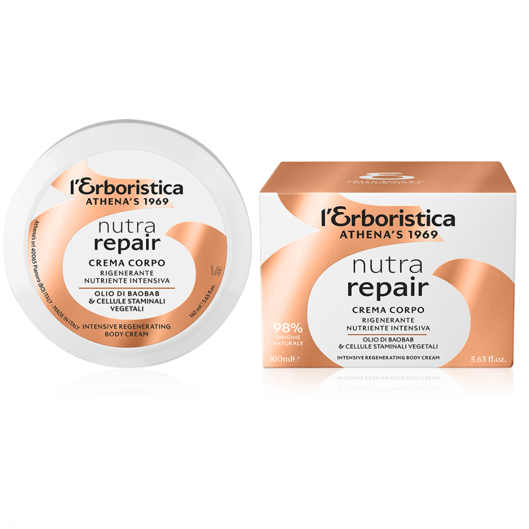 La crema corpo della nuova linea Nutra Repair è una crema rigenerante e nutriente, con olio di Baobab Biologico equosolidale e cellule staminali vegetali.