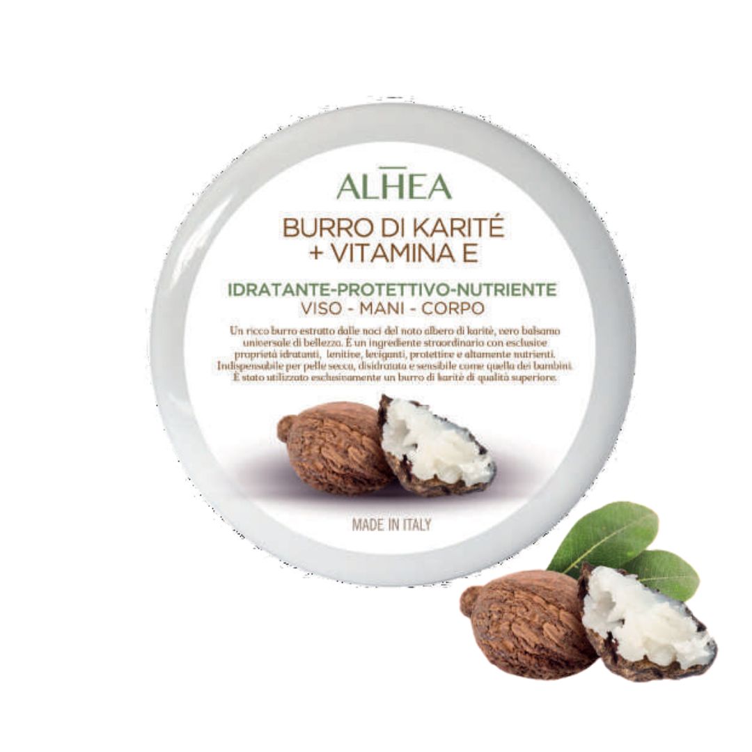 Il Burro di Karite + Vitamina E Alhea è un burro puro, ideale per viso, corpo e capelli addizionato con sola Vitamina E.