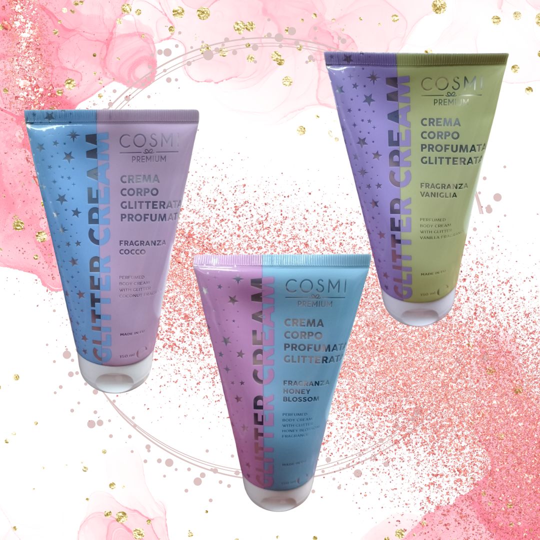 Glitter Cream è una crema corpo glitterata e profumata, arricchita con aloe vera, estratto di cetriolo e vitamina E.