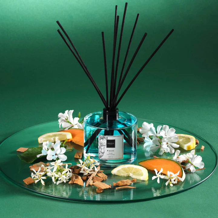 Aquae avvolge la stanza con un’essenza vibrante, ispirata alla purezza del mare e alla brezza salina.