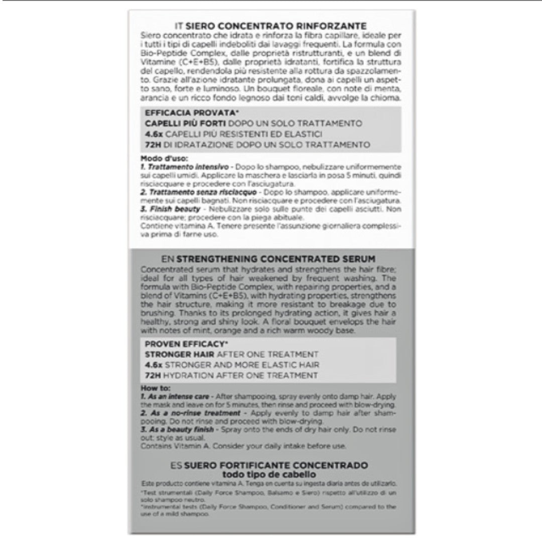 Il Siero Concentrato Rinforzante Biopoint Daily Force è un trattamento professionale intensivo che agisce in profondità per idratare e rafforzare la struttura dei capelli, rendendoli visibilmente più resistenti, elastici e luminosi.