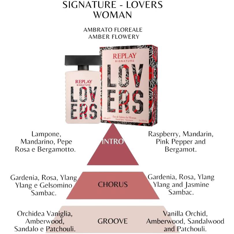 Scopri Replay Lovers, l’eau de toilette femminile che celebra la passione con una fragranza ambrata e floreale, intensa ma delicata.