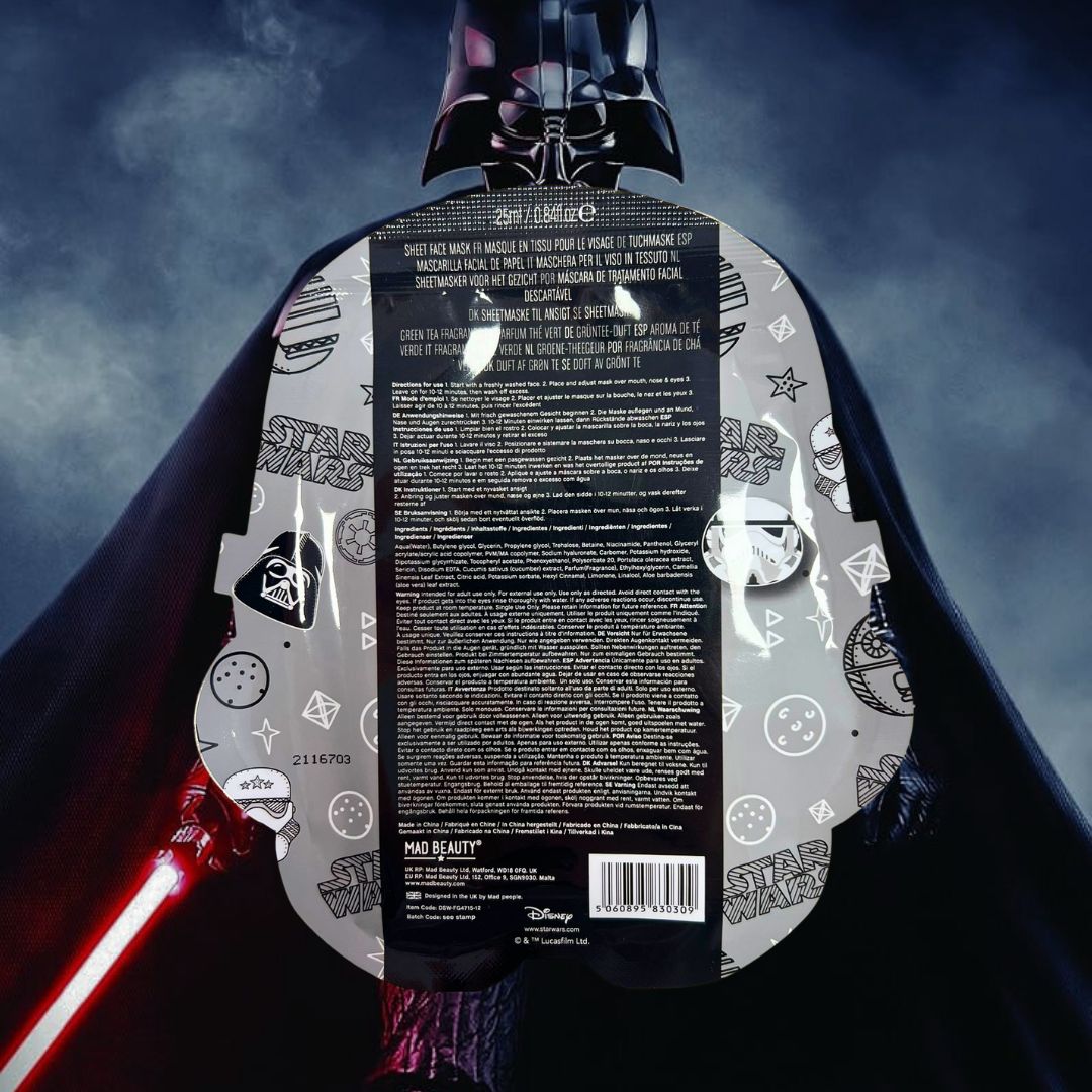 Entra nella galassia Star Wars con la maschera viso in tessuto Stormtrooper di Mad Beauty, un trattamento divertente ma efficace per donare al volto una sensazione di freschezza immediata.